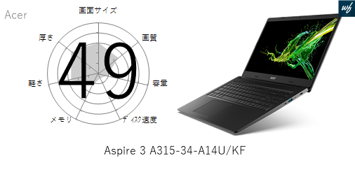 「Aspire 3 A315-34-A14U/K」はを採用しており、その性能は x となります。CPUスコアはです。