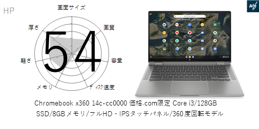 | 商品名 | Chromebook x360 14c-cc0000 価格.com限定 Core i3/128GB SSD/8GBメモリ/フルHD・IPSタッチパネル/360度回転モデル | |||