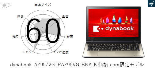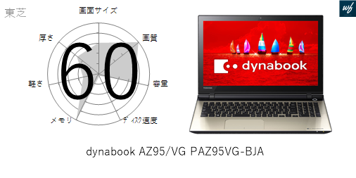 dynabook AZ95/VG PAZ95VG-BNAの 画面サイズ 画質 CPU性能 容量 メモリ 携帯性 重さ 厚み チャート
