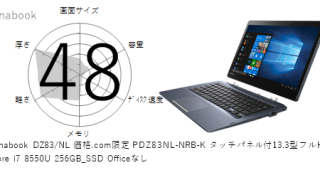 | 商品名 | dynabook DZ83/ML 価格.com限定 PDZ83ML-NRJ-K タッチパネル付13.3型フルHD Core i7 8550U 256GB_SSD Officeなし | |||