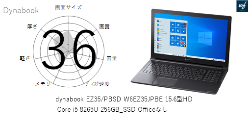 | 商品名 | dynabook EZ35/PBSD W6EZ35JPBD 15.6型フルHD Core i5 8265U 256GB_SSD Officeなし | |||