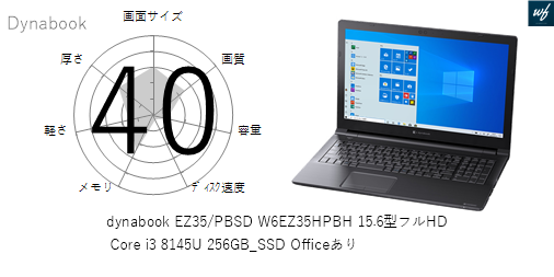 「dynabook EZ35/PBSD W6EZ35JPBD 15.6型フルHD Core i5 8265U 256GB_SSD Officeなし」はを採用しており、その性能は x となります。CPUスコアはです。