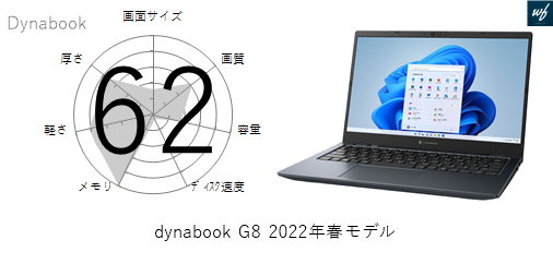「dynabook G8 2022年春モデル」はを採用しており、その性能は x となります。CPUスコアはです。