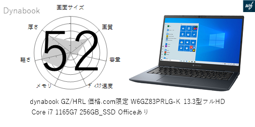 | 商品名 | dynabook GZ/HRL 価格.com限定 W6GZ83PRLE-K 13.3型フルHD Core i7 1165G7 512GB_SSD Officeあり | |||
