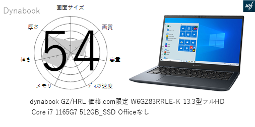 「dynabook GZ/HRL 価格.com限定 W6GZ83RRLD-K 13.3型フルHD Core i5 1135G7 256GB_SSD Officeなし」はを採用しており、その性能は x となります。CPUスコアはです。