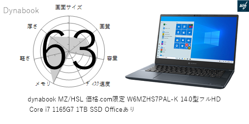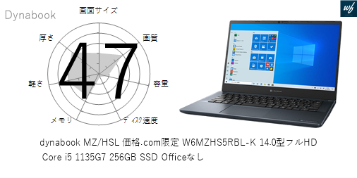| 商品名 | dynabook MZ/HSL 価格.com限定 W6MZHS5RBL-K 14.0型フルHD Core i5 1135G7 256GB SSD Officeなし | |||