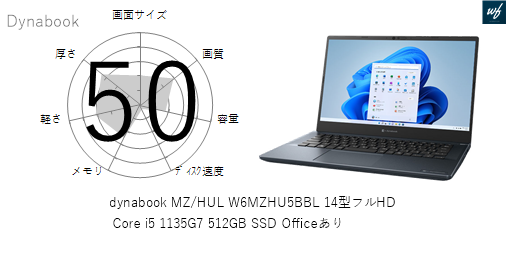 | 商品名 | dynabook MZ/HUL W6MZHU5CBL 14型フルHD Core i5 1135G7 512GB SSD Officeなし | |||