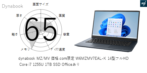 「dynabook MZ/MV 価格.com限定 W6MZMV7EBL-K 14型フルHD Core i7 1255U 512GB SSD Officeあり」はを採用しており、その性能は x となります。CPUスコアはです。