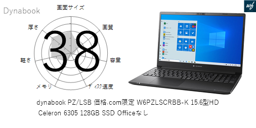 「dynabook PZ/LSB 価格.com限定 W6PZLSCNBB-K 15.6型HD Celeron 6305 128GB SSD Officeあり」はを採用しており、その性能は x となります。CPUスコアはです。