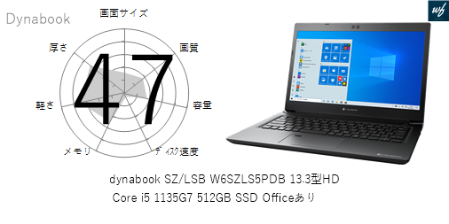 | 商品名 | dynabook SZ/LSB W6SZLS5PDB 13.3型HD Core i5 1135G7 512GB SSD Officeあり | |||