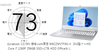 「dynabook VZ/HUL W6VZHU7XBL タッチパネル付き13.3型フルHD Core i7 1195G7 512GB SSD Officeなし」はを採用しており、その性能は x となります。CPUスコアはです。