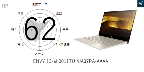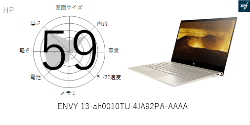ENVY 13-ah0011TU 4JA37PA-AAAAの 画面サイズ 画質 CPU性能 容量 メモリ 携帯性 重さ 厚み チャート