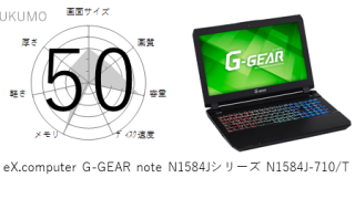 「eX.computer note N1543Jシリーズ N1543J-510/T」はIntel Core i5-6300HQ @ 2.30GHzを採用しており、その性能は2.3 x 4となります。CPUスコアはです。