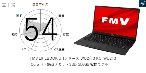 「FMV LIFEBOOK UHシリーズ WU2/F3 KC_WU2F3 大容量バッテリ・Core i5・16GBメモリ・SSD 512GB・Office搭載モデル」はを採用しており、その性能は x となります。CPUスコアはです。