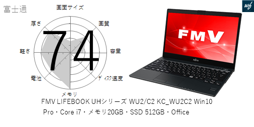 | 商品名 | FMV LIFEBOOK UHシリーズ WU2/C2 KC_WU2C2 Win10 Pro・Core i7・メモリ20GB・SSD 512GB・Office | |||