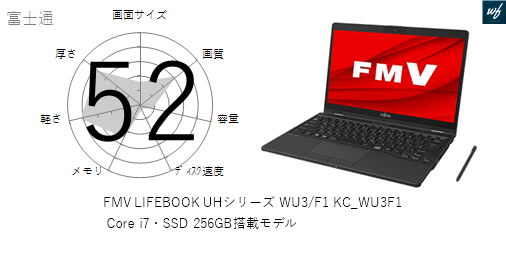 「FMV LIFEBOOK UHシリーズ WU3/F1 KC_WU3F1 Core i7・SSD 256GB搭載モデル」はを採用しており、その性能は x となります。CPUスコアはです。