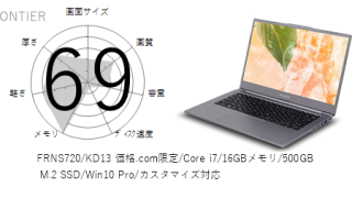 「FRNS711/KD11 価格.com限定/Core i7 1165G7/16GBメモリ/1TB NVMe SSD/Win11 Pro/カスタマイズ対応」はを採用しており、その性能は x となります。CPUスコアはです。