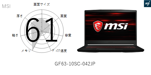 「GF63-10SC-043JP」はを採用しており、その性能は x となります。CPUスコアはです。