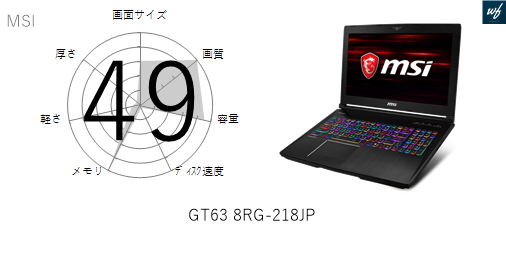 「GT63 8RG-218JP」の重さは 2.94kg です。