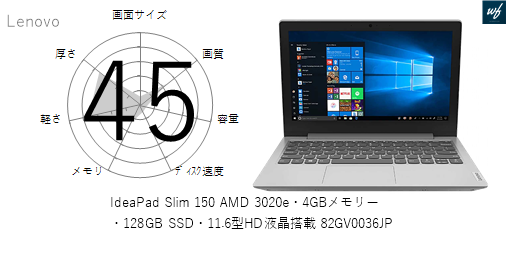 | 商品名 | IdeaPad Slim 150 AMD 3020e・4GBメモリー・128GB SSD・11.6型HD液晶搭載 82GV0036JP | |||
