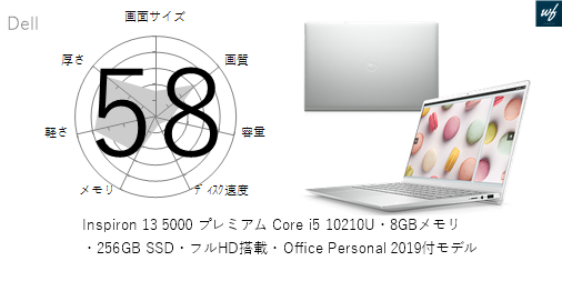 | 商品名 | Inspiron 13 5000 プレミアム Core i5 10210U・8GBメモリ・256GB SSD・フルHD搭載モデル | |||