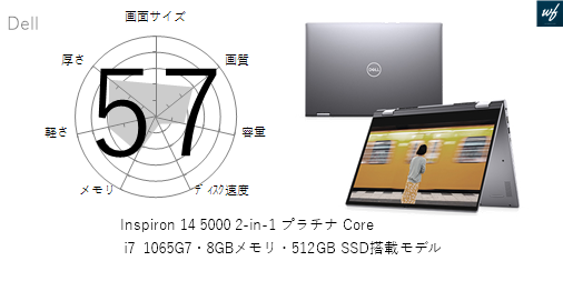 | 商品名 | Inspiron 14 5000 2-in-1 プラチナ Core i7 1065G7・8GBメモリ・512GB SSD搭載モデル | |||