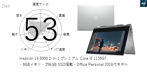 | 商品名 | Inspiron 14 5000 2-in-1 プレミアム Core i5 1135G7・8GBメモリ・256GB SSD搭載・Office Personal 2019付モデル | |||