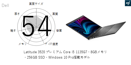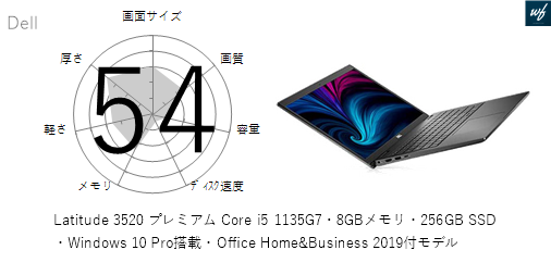 「Latitude 3520 プレミアム Core i5 1135G7・8GBメモリ・256GB SSD・Windows 10 Pro搭載・Office Home&Business 2019付モデル」はを採用しており、その性能は x となります。CPUスコアはです。