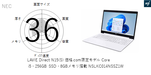 「LAVIE Direct N15(S) 価格.com限定モデル Core i7・256GB SSD・8GBメモリ・Office Home&Business 2021搭載 NSLKC011NSSH1W」はを採用しており、その性能は x となります。CPUスコアはです。
