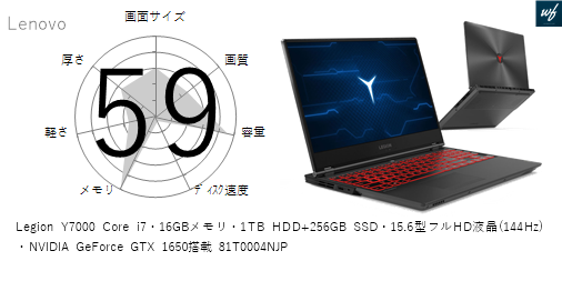 商品名Legion Y7000 Core i7・16GBメモリ・1TB HDD+256GB SSD・15.6型フルHD液晶(144Hz)・NVIDIA GeForce GTX 1650搭載 81T0004NJP