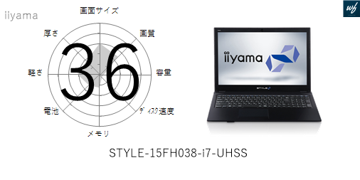LEVEL-15FX079-i7-LNSVI の 画面サイズ 画質 CPU性能 容量 メモリ 携帯性 重さ 厚み チャート