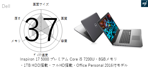 Dell[38点]Inspiron 17 5000 プレミアム Core i5 7200U・8GBメモリ・1TB HDD搭載・フルHD搭載・Office Personal 2016付モデルの各性能を評価してみた