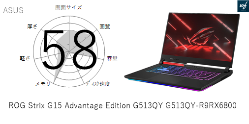 「ROG Strix G15 Advantage Edition G513QY G513QY-R9RX6800」はを採用しており、その性能は x となります。CPUスコアはです。