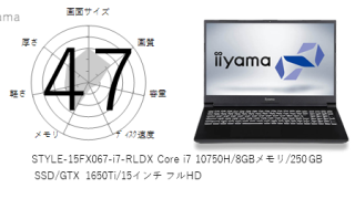 STYLE-15FH039-i5-UHSX-D Core i5 8400/8GBメモリ/240GB SSD/15インチの 画面サイズ 画質 CPU性能 容量 メモリ 携帯性 重さ 厚み チャート