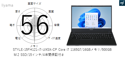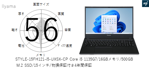 | 商品名 | STYLE-15FH121-i5-UXSX-CP Core i5 1135G7/16GBメモリ/500GB M.2 SSD/15インチ/物損保証付き4年間保証 | |||