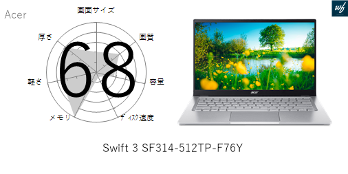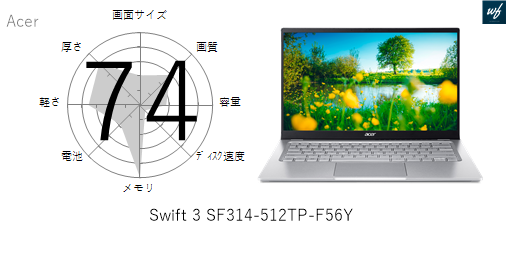 Acer[69点]Swift 3 SF314-512TP-F56Yの各性能を評価してみた