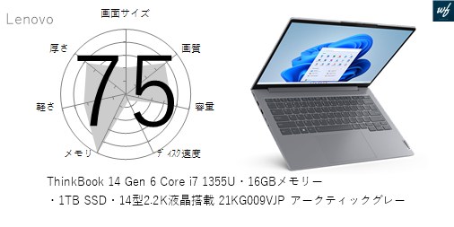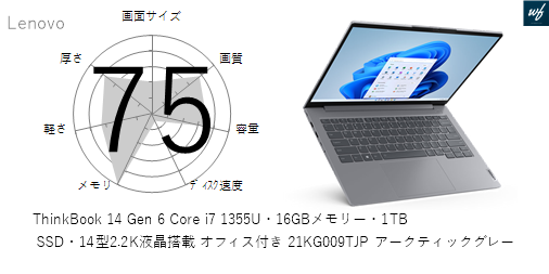 ThinkBook 16 Gen 6 AMD Ryzen 7 7730U・16GBメモリー・1TB SSD・16型WQXGA液晶搭載 21KK005DJP アークティックグレー