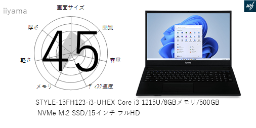 [46点]STYLE-15FH123-i3-UHEX Core i3 1215U/8GBメモリ/500GB NVMe M.2 SSD/15インチ フルHDの各性能を評価してみた