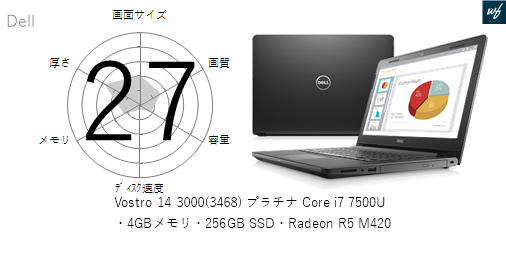 | 商品名 | Vostro 14 3000(3468) プラチナ Core i7 7500U・4GBメモリ・256GB SSD・Radeon R5 M420 | |||