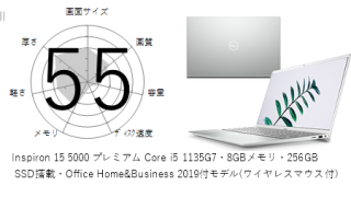 Vostro 3515 ベーシック Ryzen 3 3250U・4GBメモリ・256GB SSD・Windows 11搭載モデルの 画面サイズ 画質 CPU性能 容量 メモリ 携帯性 重さ 厚み チャート
